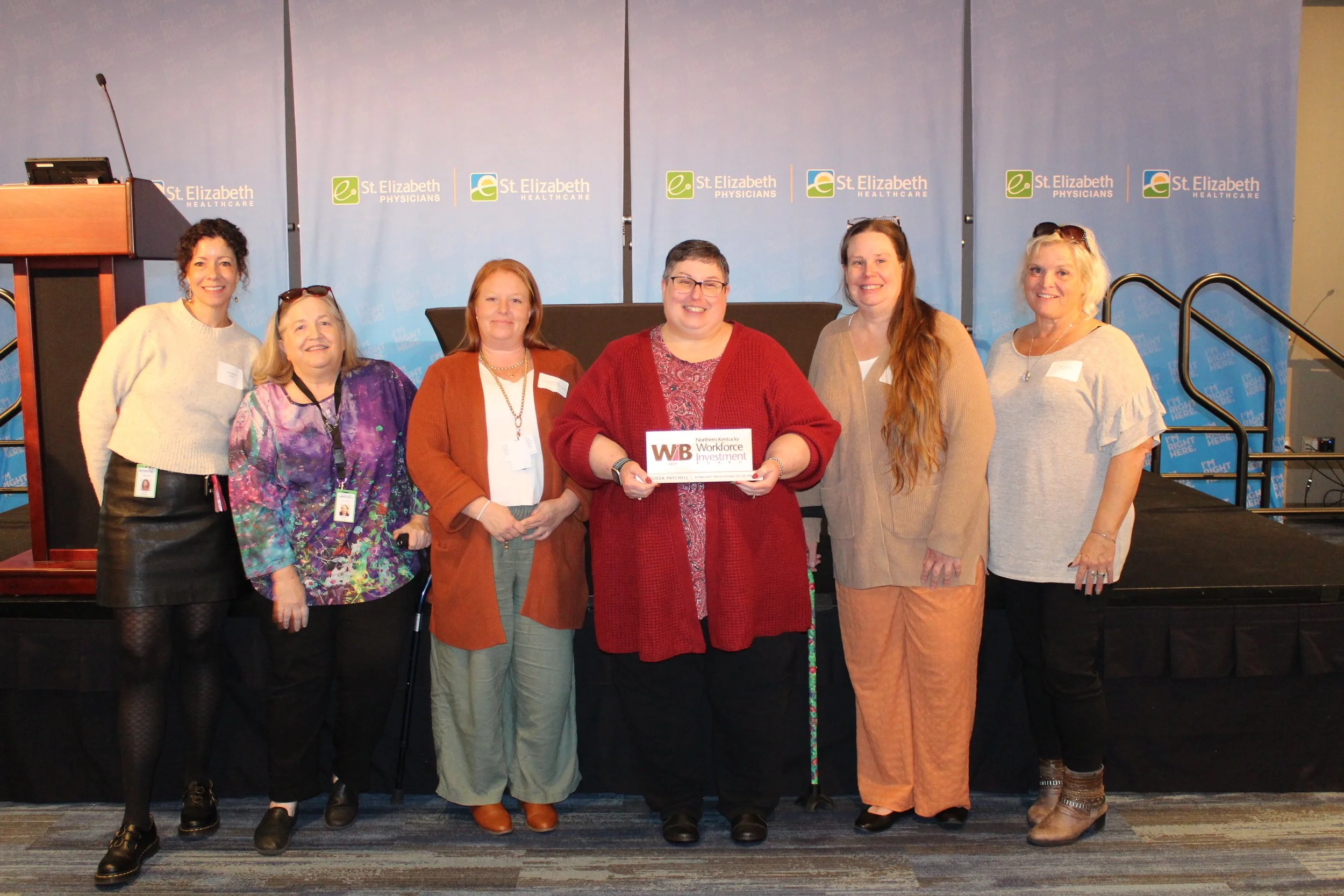 Dr. Heidi Murley (second from left) accepted the award on behalf of St. Elizabeth. She is shown here with (left to right): UNKNOWN, Julie McGregor (who serves on both the NKWIB and NKY Works Boards), Lois Post, Brittany Sorrell, Jennifer Martin, and Hiliary Ruth.