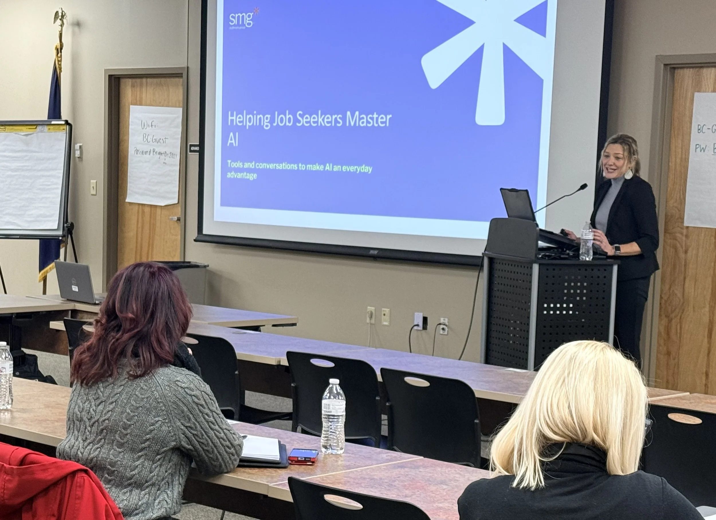 Staffmark’s Jennifer Fitzpatrick shared practical tips for incorporating AI into the job-search process at the Partner for Success workshop.